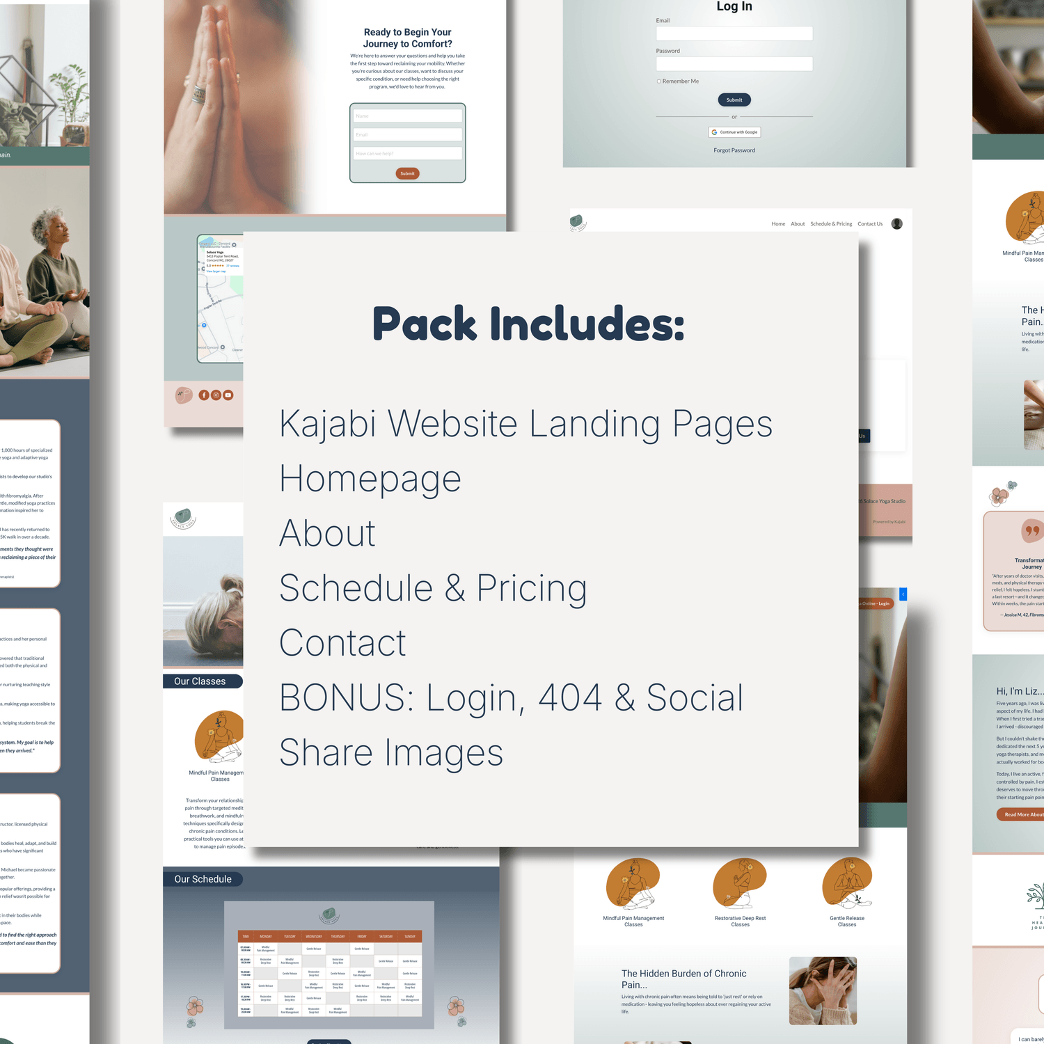 Included with your Kajabi template you'll get bonus graphics for your login and 404 system pages as well as social share images for your main landing pages.