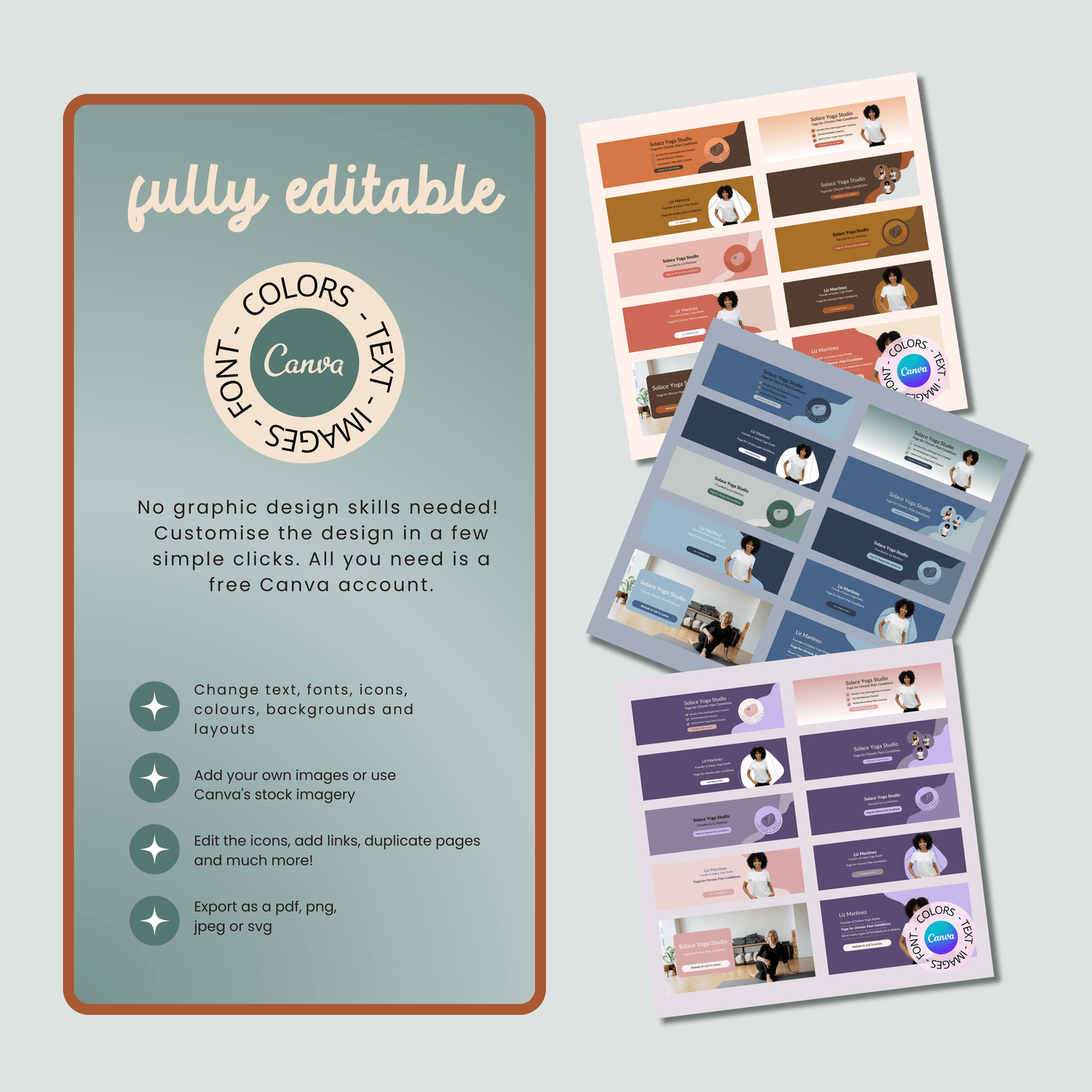 Boost your yoga, movement or wellness brand with these fully editable Canva banner templates.