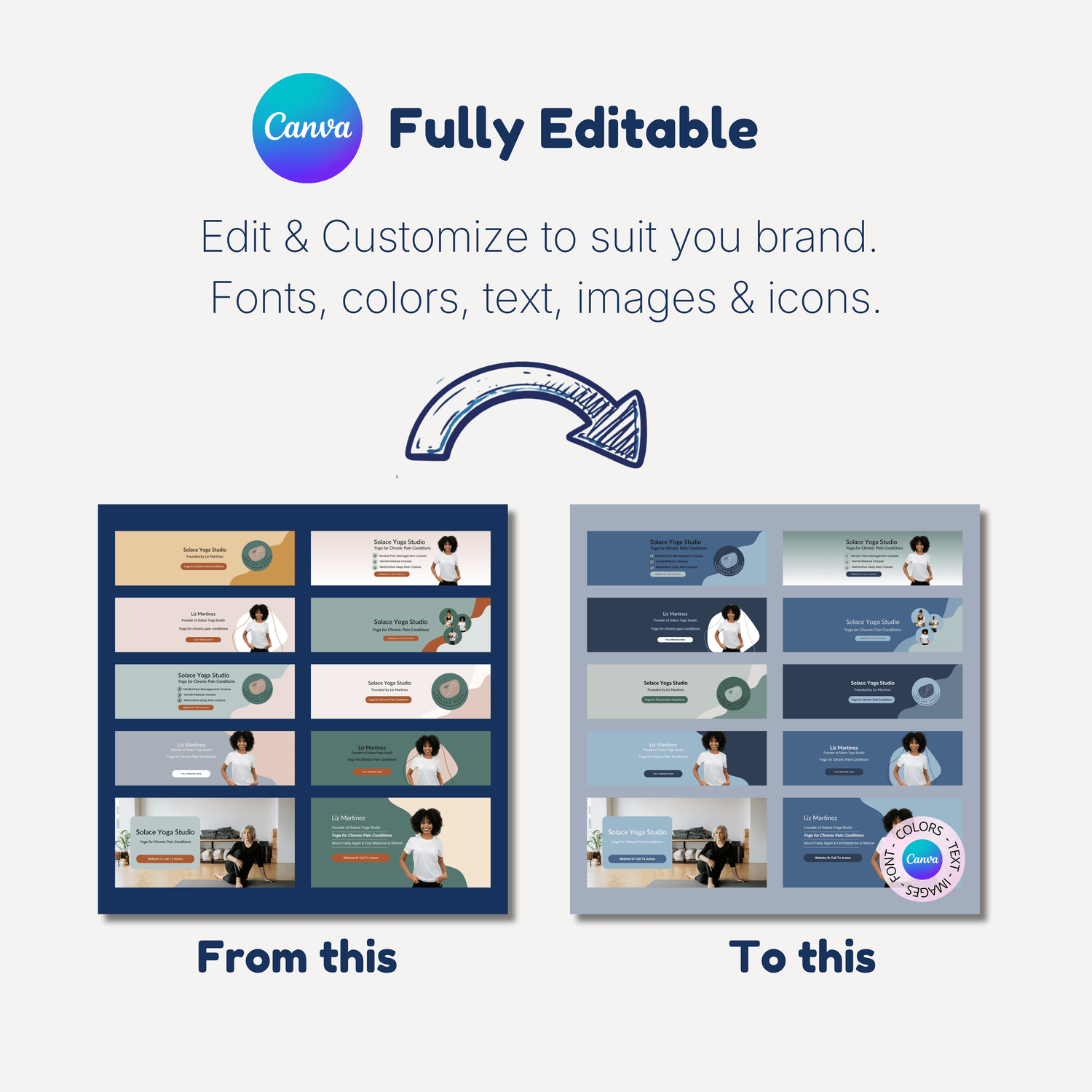 Change colors, text, images, icons and layouts.