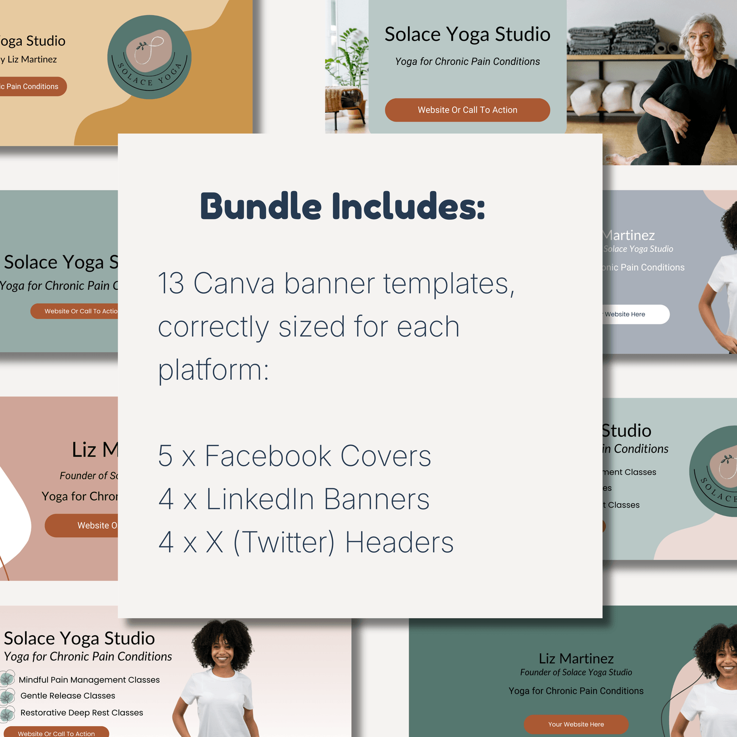 This template pack includes 13 Canva banner templates, correctly sized for each platform.