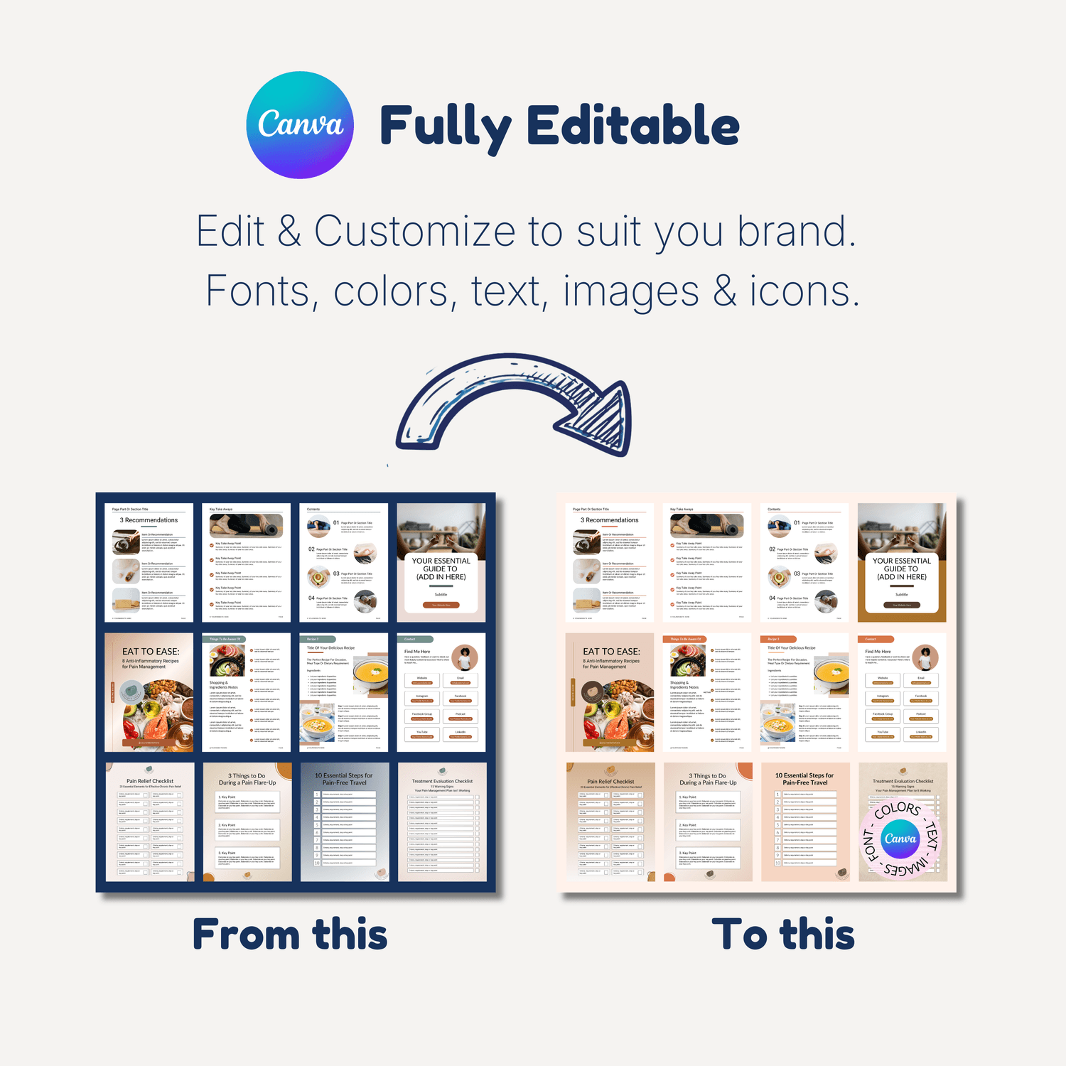 Change colors, text, images, icons and layouts.