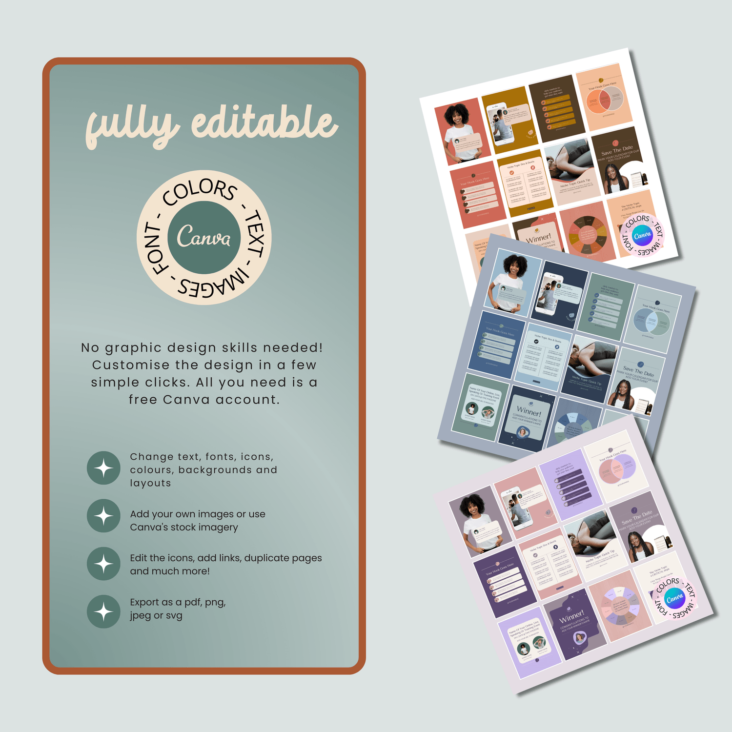 Fully Customizable Change colors, text, images, and layouts