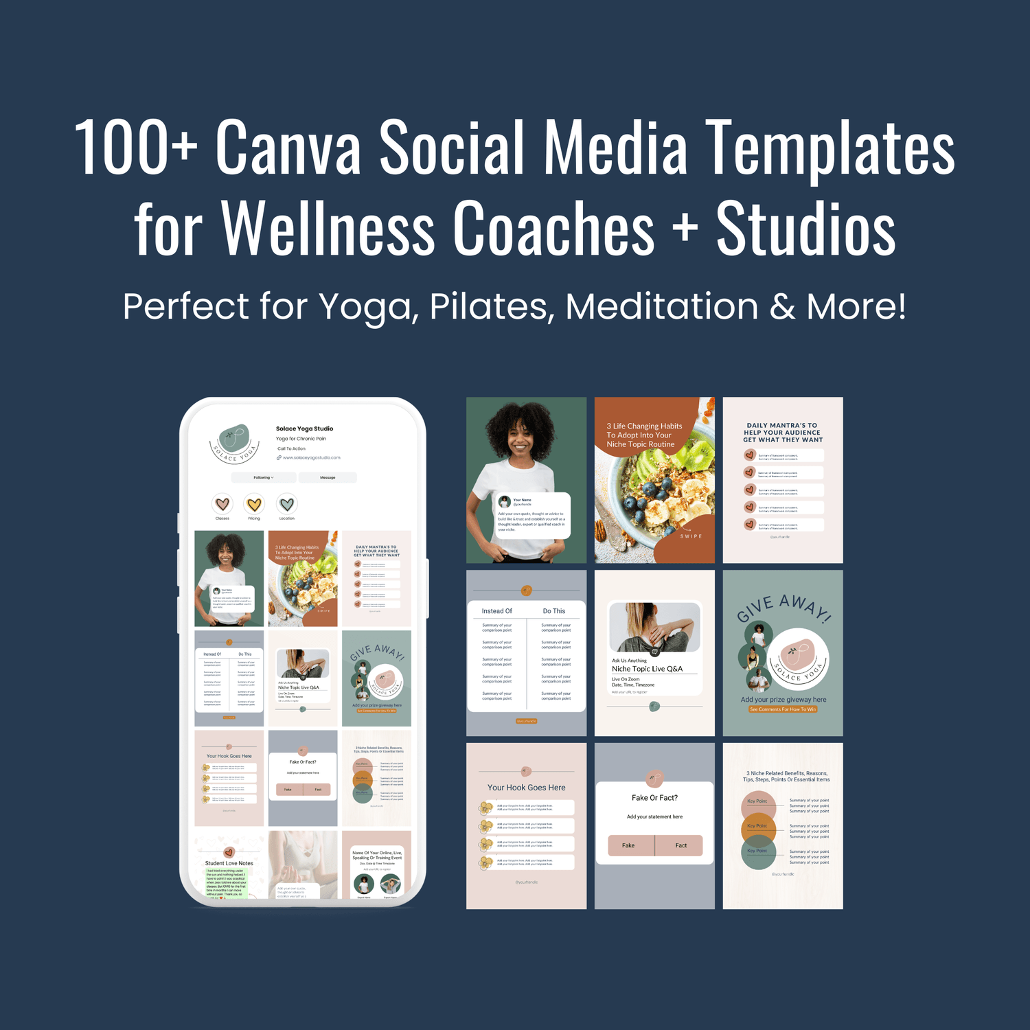 Boost your yoga, movement or wellness brand with these fully editable Canva social media templates