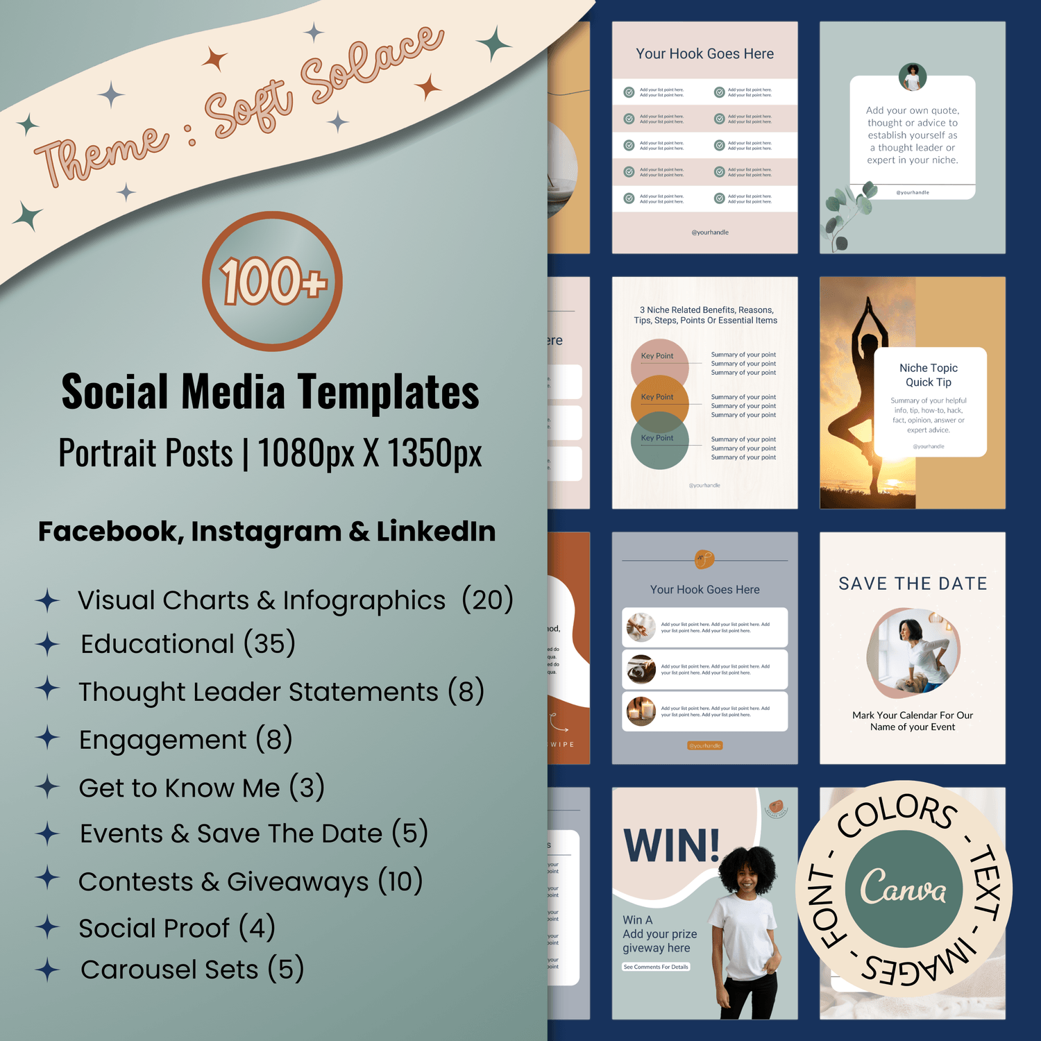 Perfect for any wellness business wanting cohesive, ready-to-use graphics on Facebook, Instagram & LinkedIn